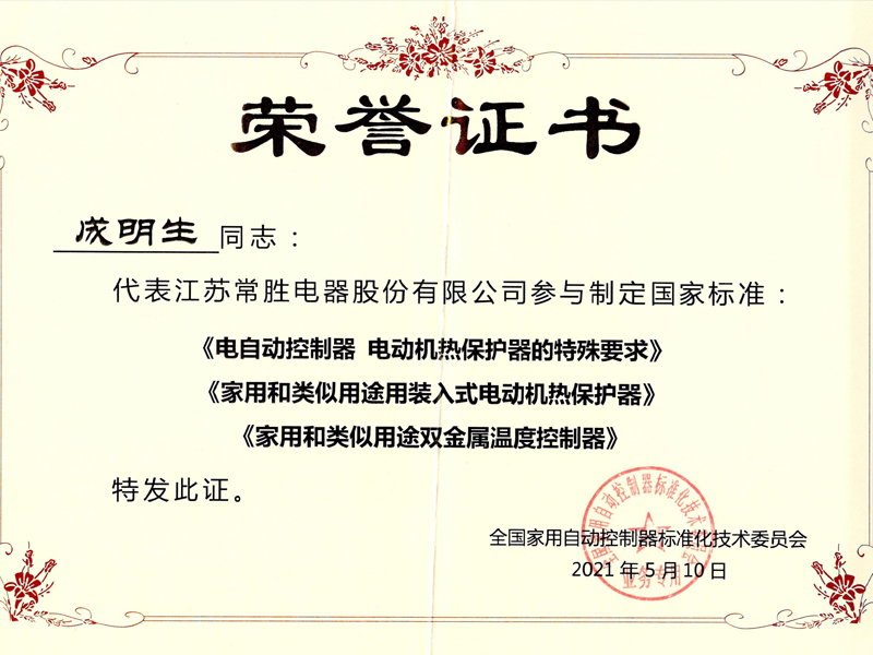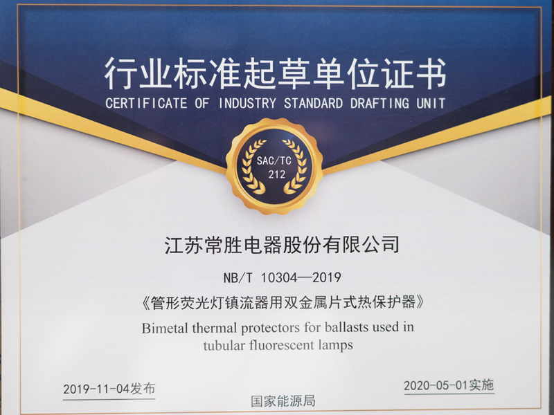 常胜电器 行业标准起草单位证书···
